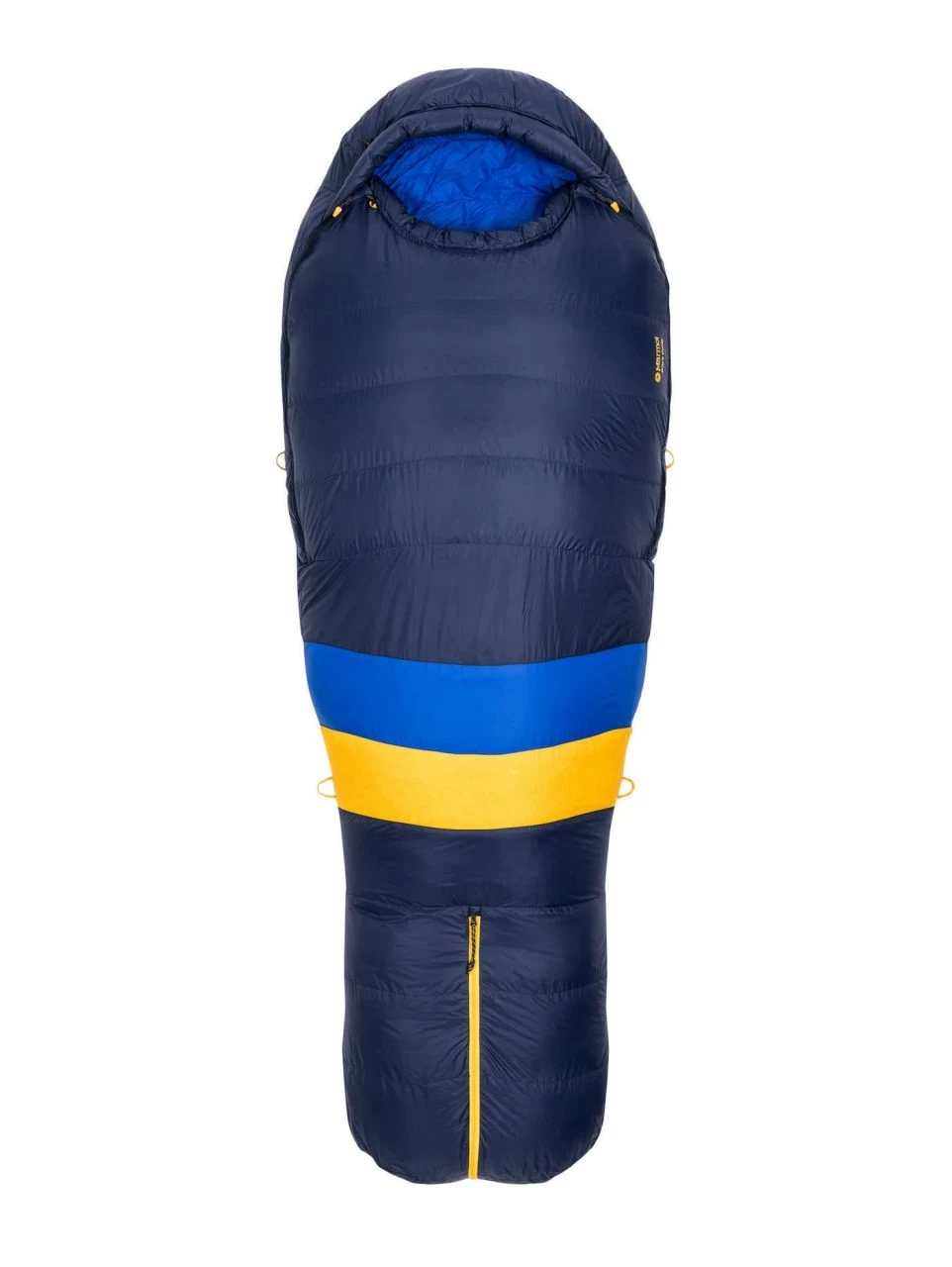 Mit seiner Daunenfüllung mit 650er Bauschkraft und einem verstellbaren Wärmekragen gegen Wärmeverlust ist der Ouray Regular von MARMOT für kalte Nächte gemacht. Der speziell auf Frauen abgestimmte Schnitt hält Wärme dort, wo du sie brauchst, und dank beidseitiger Reißverschlüsse kommt man in diesen Schlafsack leicht hinein und wieder heraus.