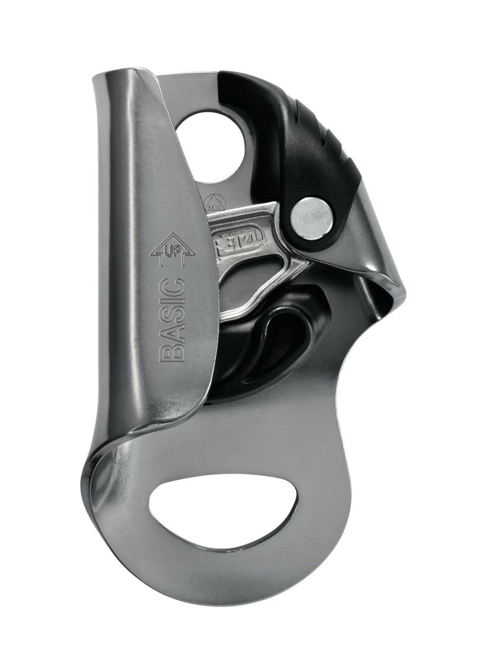 Der gezahnte Klemmnocken aus verchromtem Stahl und der Reinigungsschlitz optimieren den Einsatz selbst an verschmutzten oder vereisten Seilen. Der Nocken des Basic von PETZL greift auf den Millimeter genau, wenn er belastet wird, und lässt sich mit minimalem Kraftaufwand gleichmäßig am Seil nach oben schieben.