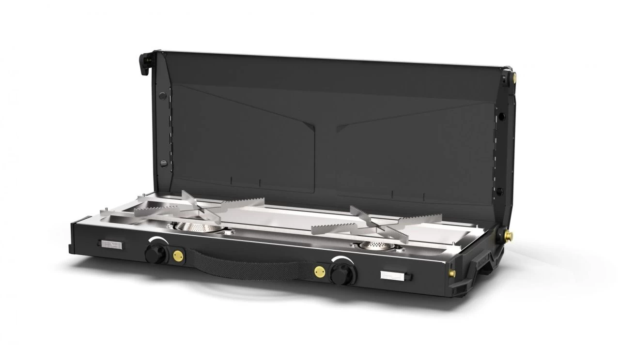 - Die zwei Brenner bieten unterschiedliche Flammenoptionen, damit du mit mehreren Töpfen oder Pfannen gleichzeitig und bei unterschiedlichen Temperaturen kochen kannst